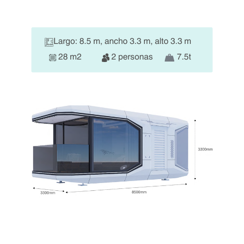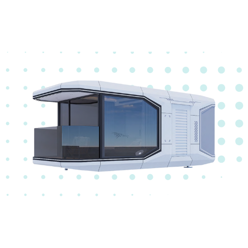 La casa cápsula espacial usa materiales ligeros y resistentes, como aleaciones de aluminio y titanio. Cuenta con vidrio doble aislante, ventanas panorámicas de 270° y tragaluces, con un diseño futurista y tecnológico que brinda una experiencia espacial única.