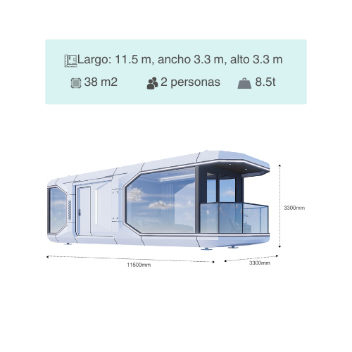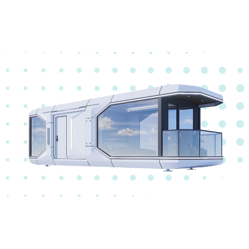 La casa cápsula espacial usa materiales ligeros y resistentes, como aleaciones de aluminio y titanio. Cuenta con vidrio doble aislante, ventanas panorámicas de 270° y tragaluces, con un diseño futurista y tecnológico que brinda una experiencia espacial única.