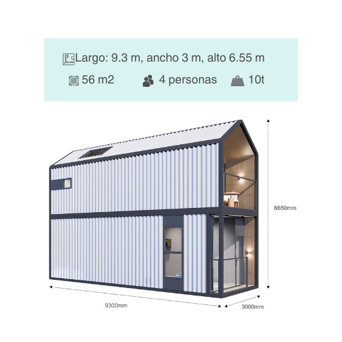 Inspiración industrial, espaciosa y eficiente. Ideal como vivienda moderna. Techo estilo triángulo. Opción de doble altura.