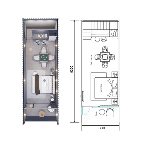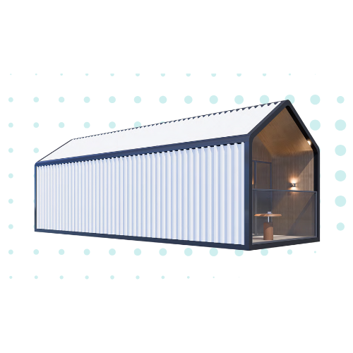 Configuración estándar interna | Decoración de pared / techo | Pared / techo de la sala de estar / dormitorio: Tablero OSB para el panel de revestimiento; tablero de fibra de madera y bambú para la decoración del revestimiento Pared de baño: Placa de presión de fibra de cemento impermeable para panel de revestimiento; Tablero resistente a los rayos UV estilo mármol para decoración de revestimiento |