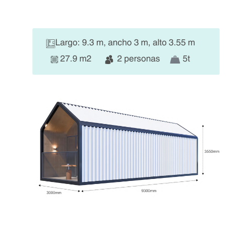 Inspiración industrial, espaciosa y eficiente. Ideal como vivienda moderna. Techo estilo triángulo.