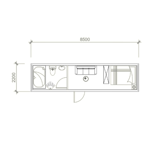 Configuración estándar interna | Decoración de pared / techo | Pared / techo de la sala de estar / dormitorio: Tablero OSB para el panel de revestimiento; tablero de fibra de madera y bambú para la decoración del revestimiento Pared de baño: Placa de presión de fibra de cemento impermeable para panel de revestimiento; Tablero resistente a los rayos UV estilo mármol para decoración de revestimiento |