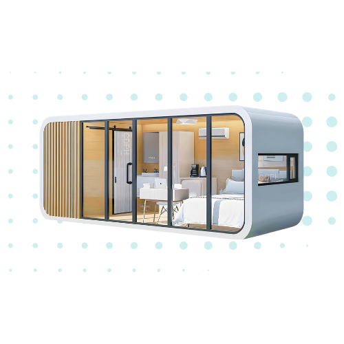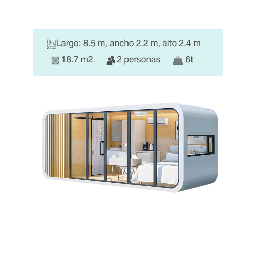 La casa cápsula espacial usa materiales ligeros y resistentes, como aleaciones de aluminio y titanio. Cuenta con vidrio doble aislante, ventanas panorámicas de 270° y tragaluces, con un diseño futurista y tecnológico que brinda una experiencia espacial única.