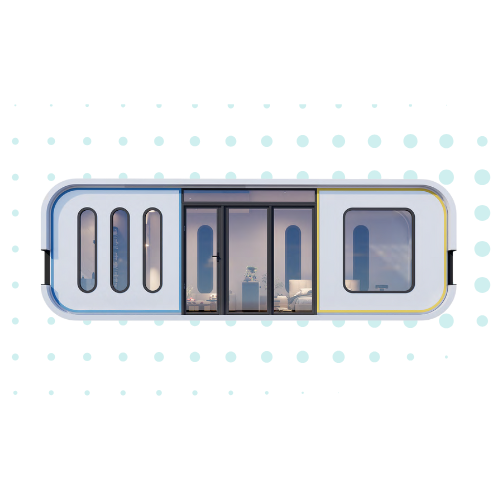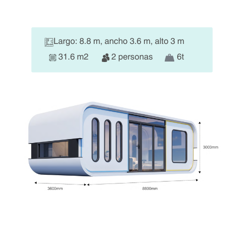 La casa cápsula espacial usa materiales ligeros y resistentes, como aleaciones de aluminio y titanio. Cuenta con vidrio doble aislante, ventanas panorámicas de 270° y tragaluces, con un diseño futurista y tecnológico que brinda una experiencia espacial única.
