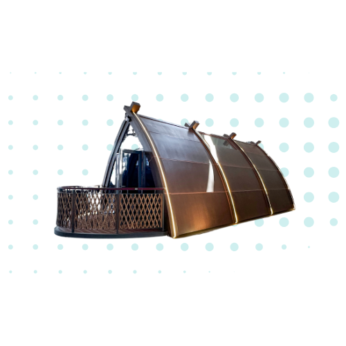 Inspiración rústica y nórdica. Techo triangular basado en las tradicionales tiendas “tipi”. Ideal para entornos naturales o turísticos.